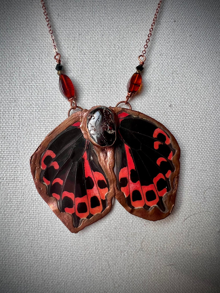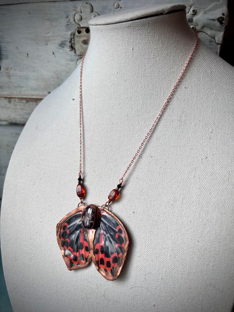 Electroformed Crimson Patch Butterfly on a rose gold plated Copper Chain Necklace.