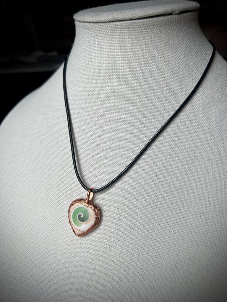 Electroformed Fossilized Conch Shell Heart on Corded Adjustable Necklace.