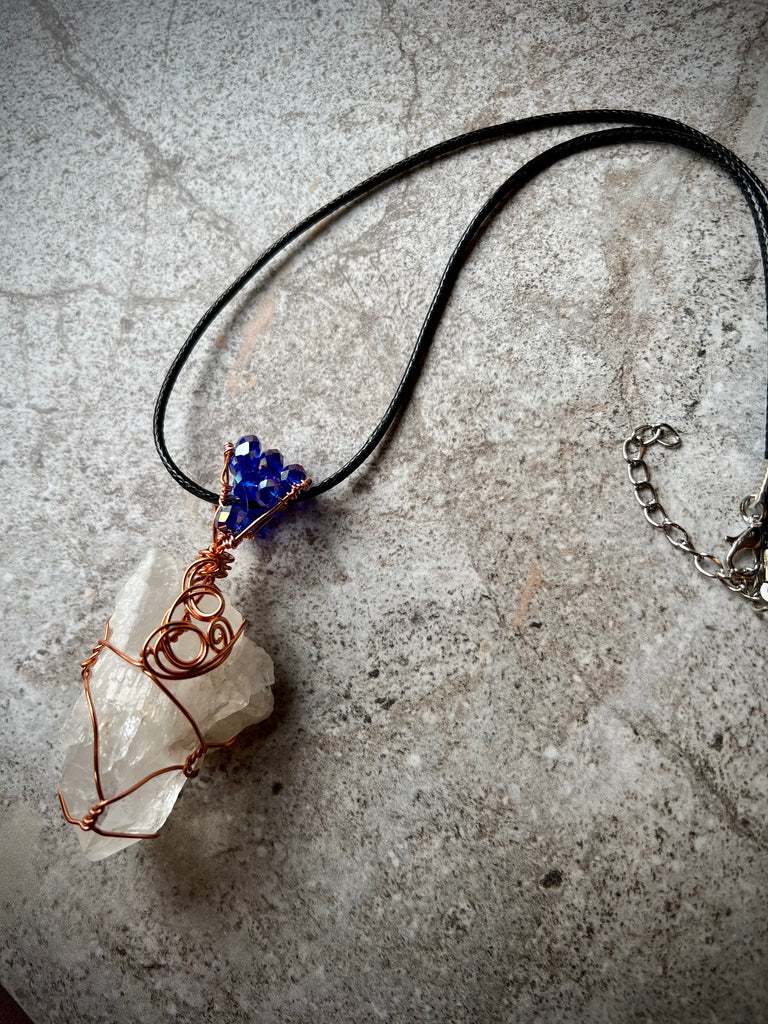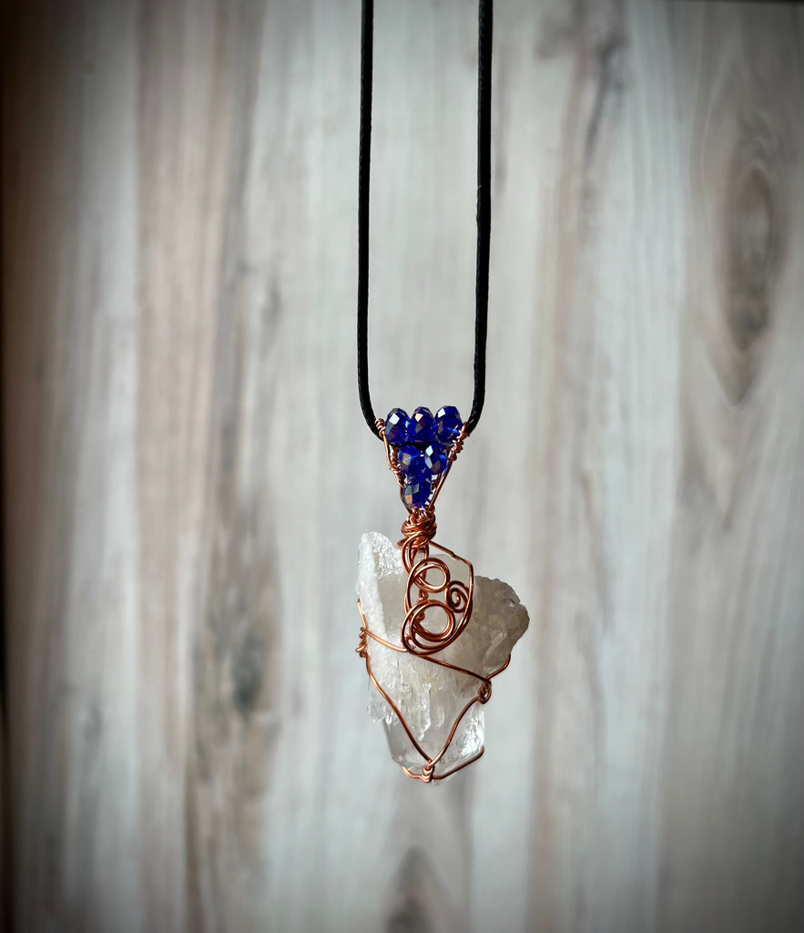 Wire wrapped crystal Quartz with non tarnish copper wire.